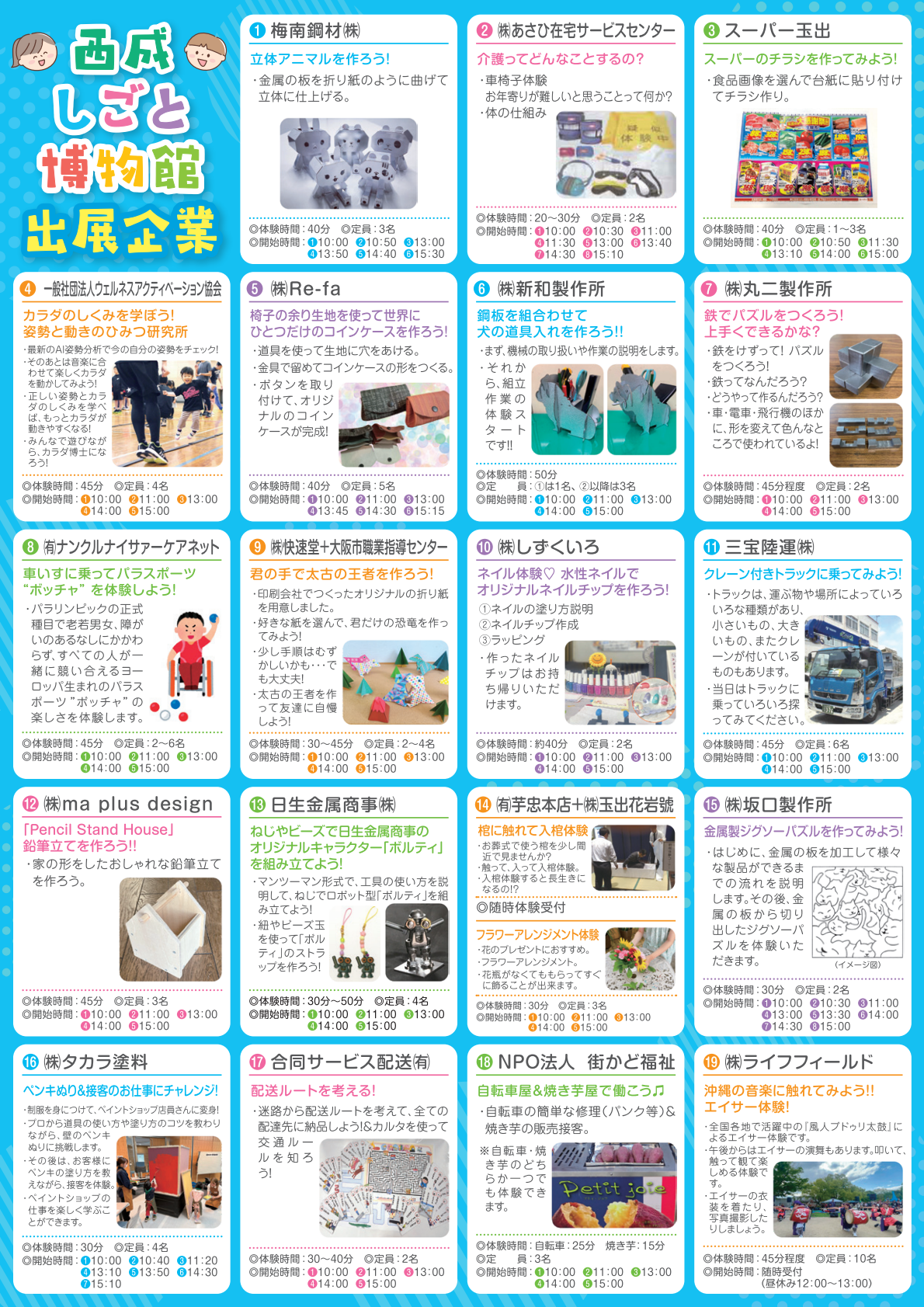 「西成しごと博物館」企業21社が19ブースで出展されるそうですが